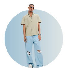 Light Blue Fish Cut Men's Regular Straight Jeans