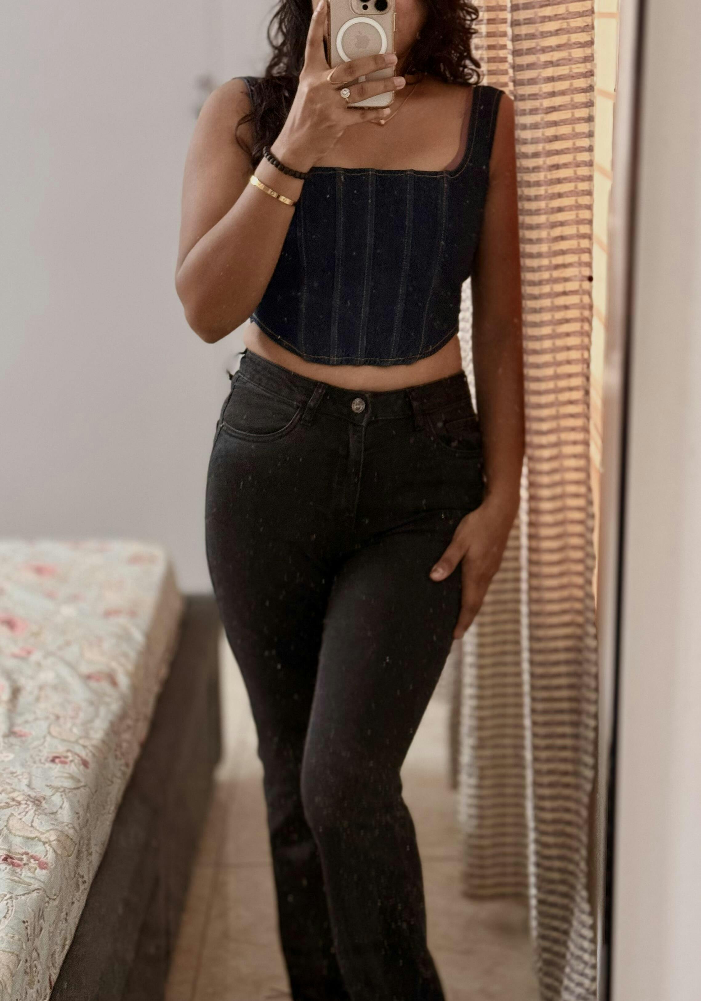 Description: Introduce modern aesthetics to your wardrobe with this Blue Women's Bustier Corset Top. Carved from a rigid cotton material for uninterrupted breathability, this denim style flaunts seam detailing in the front for a chic twist. Pair it with denims and chunky sneakers for a relaxed look. Find yourself in MY FREAKINS, where everyone has something to call their own!