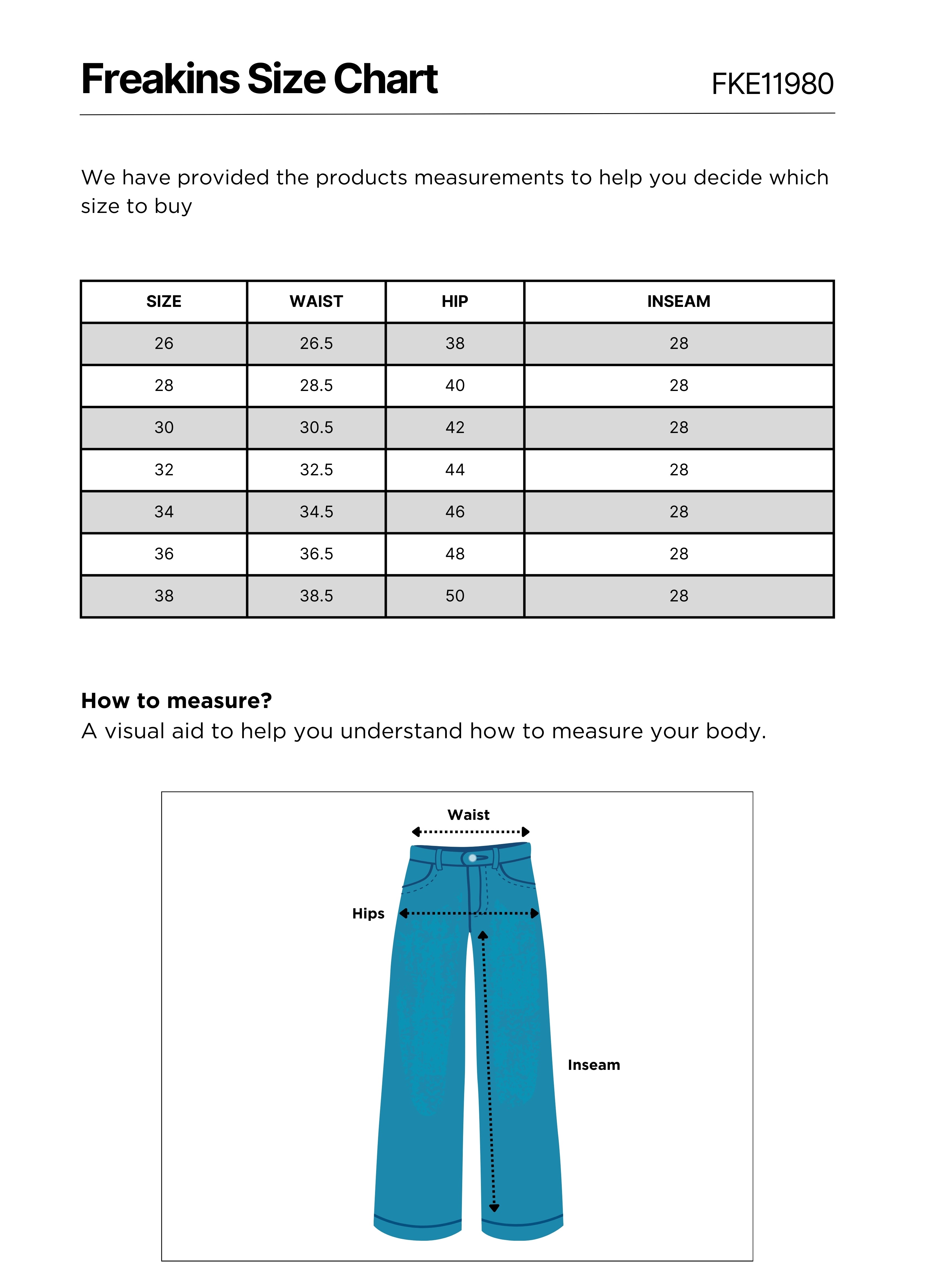 The model (height 5'3” , waist 25" , hips 32") is wearing size 26.
