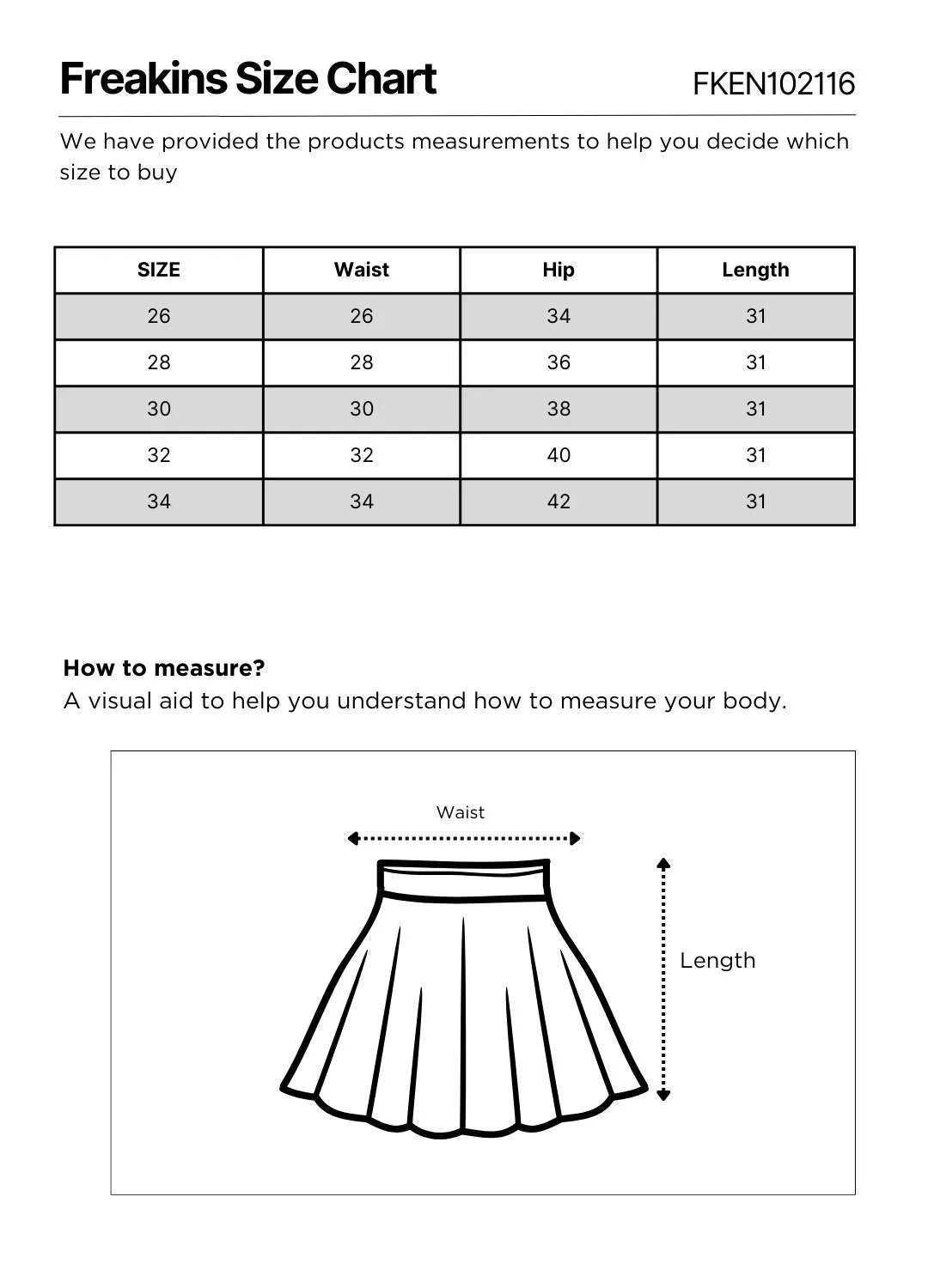 The model (Height 5'6", Waist 28", Hips 35") wearing size 28.